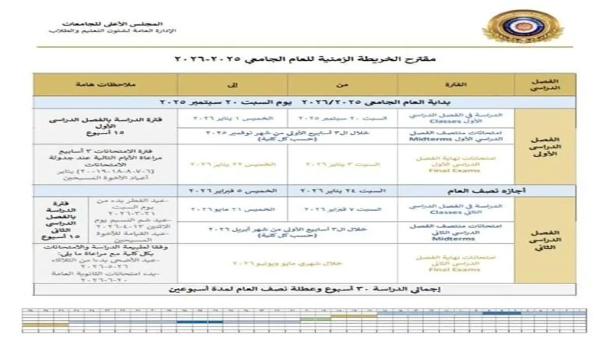 وتشير الوزارة إلى أن هذه المواعيد نهائية ولا تقبل أي تأجيلات أو تعديلات.