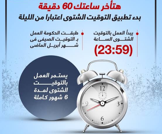 موعد تطبيق التوقيت الشتوي 2024 في مصر