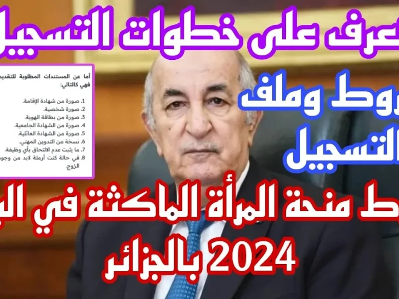 هناك عدد كبير جدا من الأشخاص يتساءلون عن شروط التسجيل في منحة المرأة الماكثة في الجزائر ومن الجدير بالذكر أن هناك مجموعة من الشروط الضرورية التي لابد من توافرها لكي يتم الحصول على تلك المنحة، وفيما يلي في هذا المقال نوفرها لكم.