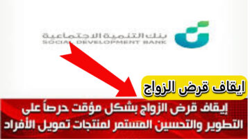 تاريخ النشر تعرف على أسباب إيقاف قرض الزواج بشكل مؤقت بالمملكة العربية السعودية… بنك التنمية الاجتماعية يوضح التفاصيل