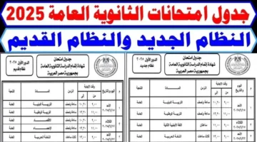 تاريخ النشر عاجـــل.. جدول امتحانات الثانوية العامة 2025 لجميع الطلاب المعلن رسميا من وزارة التربية والتعليم