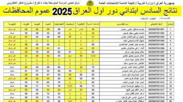 تاريخ النشر “رابط رسمي ومباشر” الاستعلام عن نتائج السادس الابتدائي 2025 الدور الأول في العراق عبر موقع نتائجنا